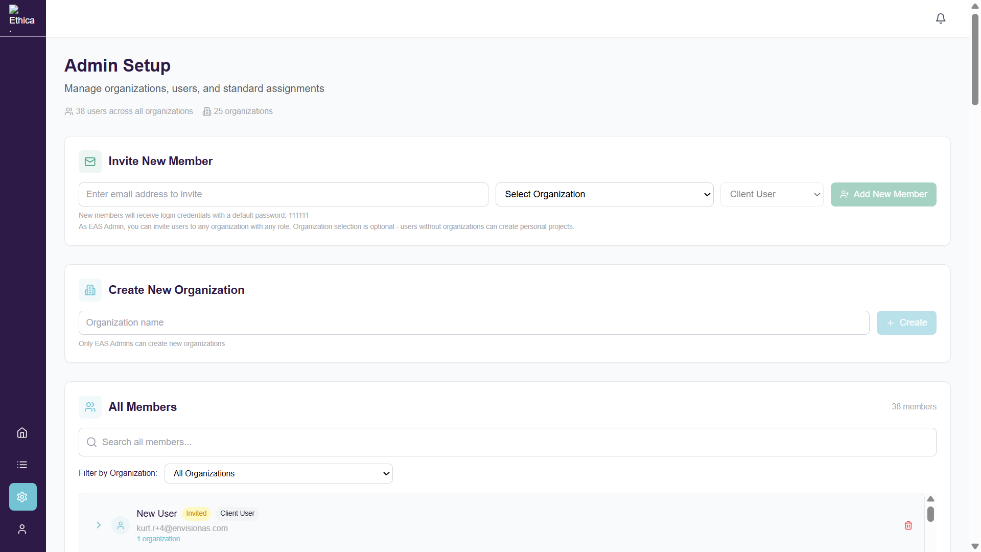 Add your organisation and team members. Assign permissions and responsibilities so every project has clear ownership and controlled access.